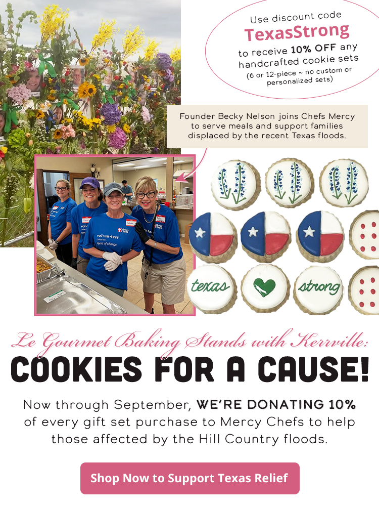 Orders can be picked up at Le Gourmet Baking in Central Commons (formerly Central Christian Church) in Dallas, Texas.
